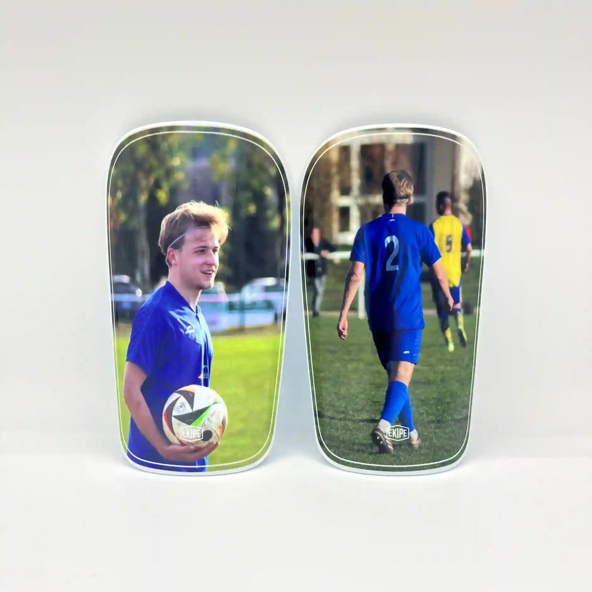 Importez votre photo : on la transforme en un protège-tibia clair, net et fidèle à l’original.