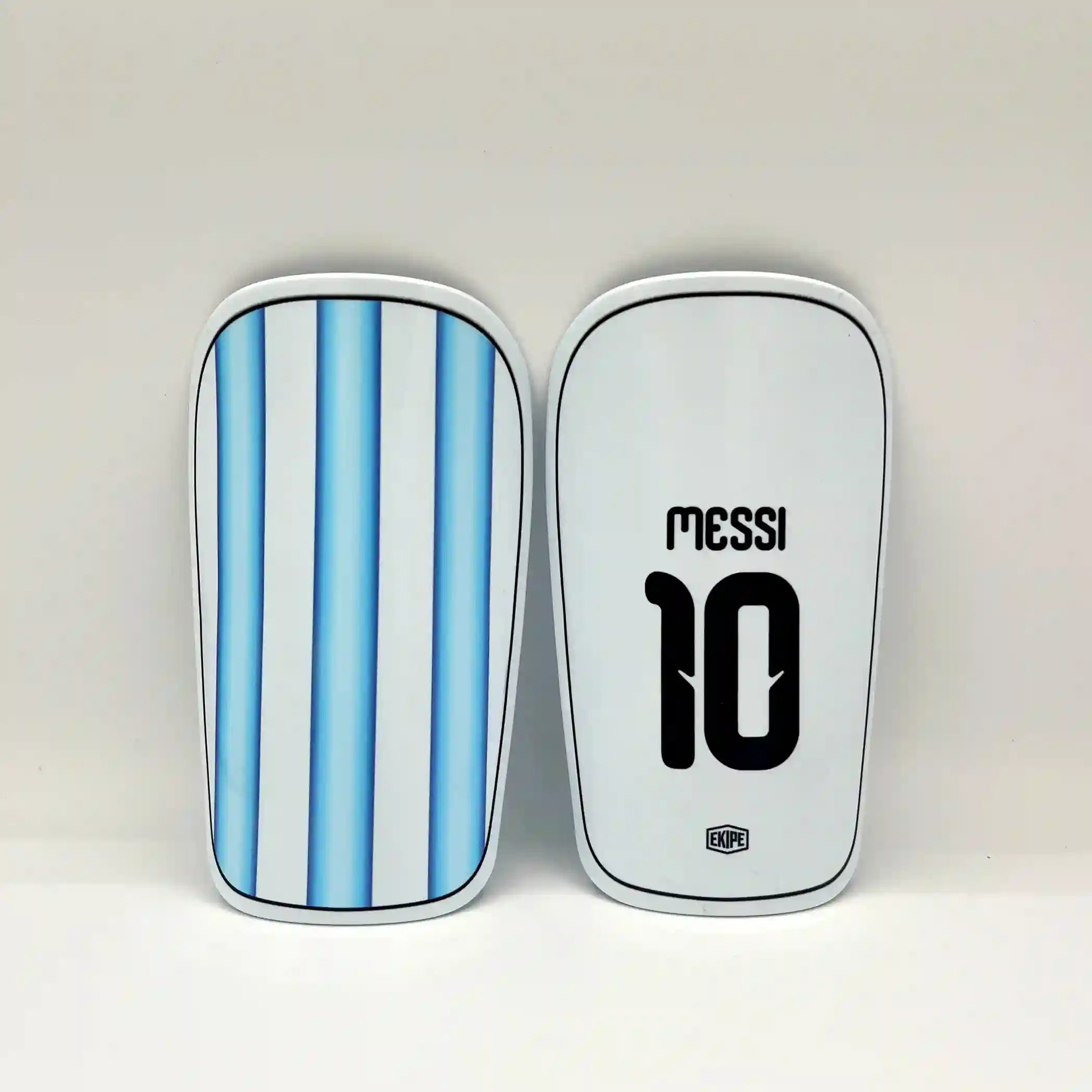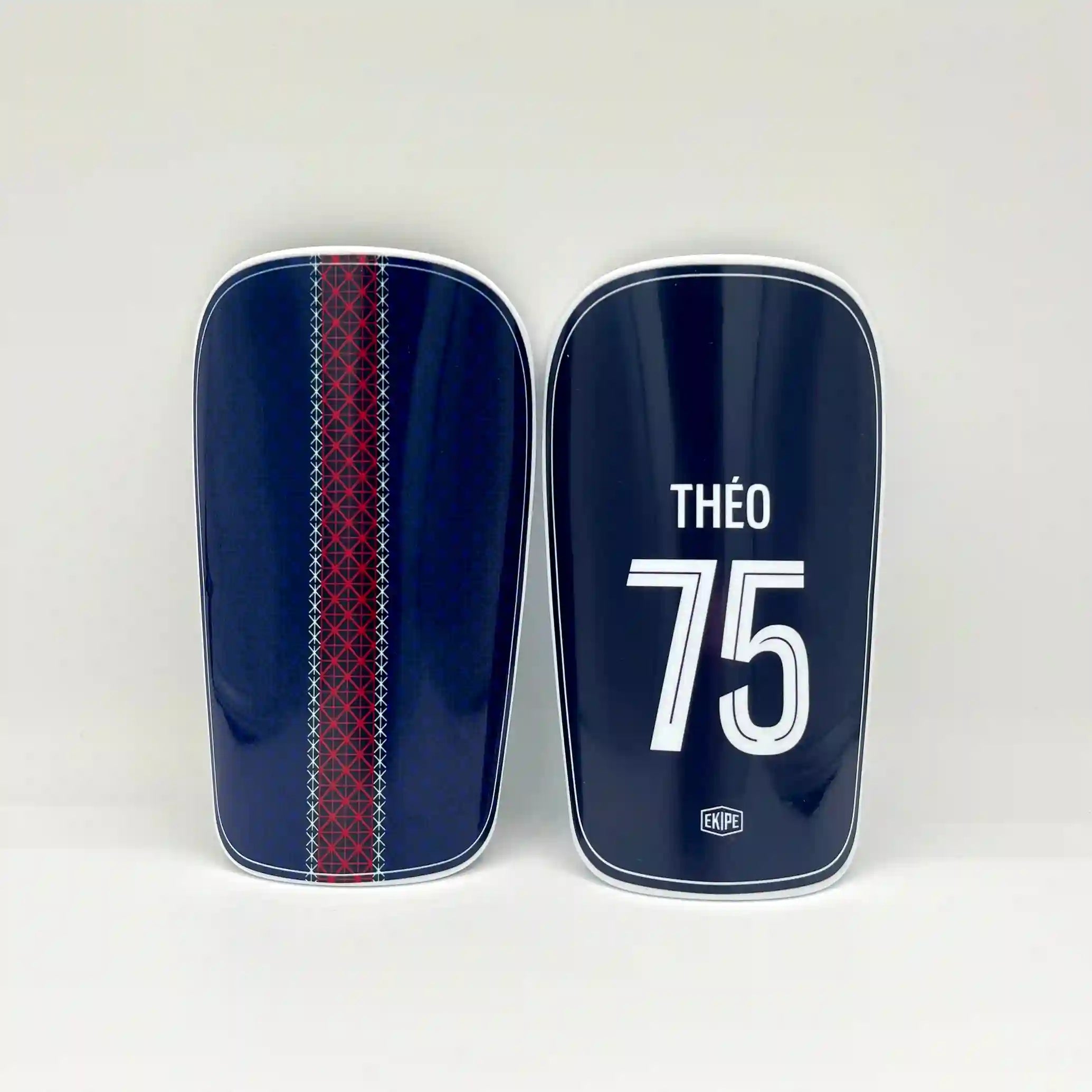 Fabriqué et vendu par Ekipe, ce protège-tibia s’inspire des couleurs et motifs de clubs célèbres, sans affiliation officielle.